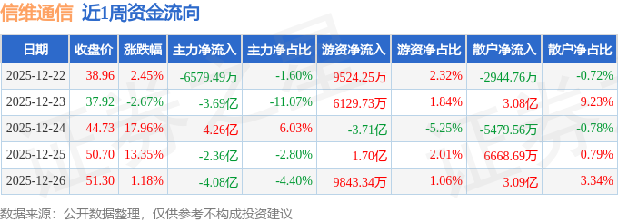 资金流向数据方面,本周信维通信主力资金合计净流出6.53亿元,游资资金合计净流入5373.15万元,散户资金合计净流入5.99亿元。本周资金流向一览见下表: