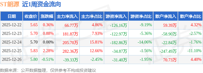 资金流向数据方面,本周ST朗源主力资金合计净流入697.37万元,游资资金合计净流出498.26万元,散户资金合计净流出199.11万元。本周资金流向一览见下表: