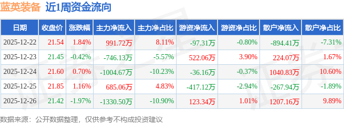 资金流向数据方面,本周蓝英装备主力资金合计净流出1404.52万元,游资资金合计净流入94.81万元,散户资金合计净流入1309.71万元。本周资金流向一览见下表: