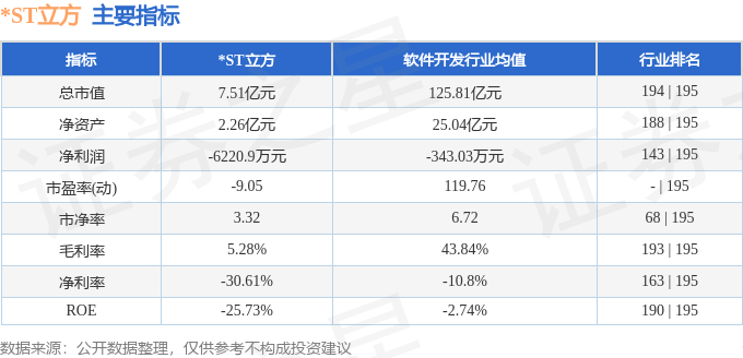 *ST立方(300344)主营业务:包括智能软硬件业务板块(数字云基建业务,主要包括智能硬件产品、智能软件产品、平台)、数字化智能服务板块(行业应用及解决方案,主要包括BIM、CIM(城市信息模型)数字智能服务等数字化交付、数字智能平台定制服务、数字智能平台解决方案和其他技术服务)。 *ST立方2025年三季报显示,前三季度公司主营收入2.03亿元,同比下降0.44%;归母净利润-6220.9万元,同比下降20.59%;扣非净利润-6224.7万元,同比下降20.73%;其中2025年第三季度,公司单季度主营收入7918.21万元,同比上升13.38%;单季度归母净利润-2231.21万元,同比下降26.31%;单季度扣非净利润-2229.67万元,同比下降25.03%;负债率42.63%,财务费用-52.01万元,毛利率5.28%。