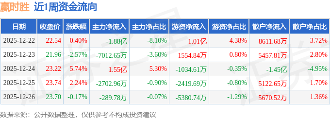 资金流向数据方面,本周赢时胜主力资金合计净流出1.32亿元,游资资金合计净流入2864.9万元,散户资金合计净流入1.04亿元。本周资金流向一览见下表: