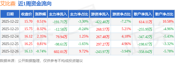 资金流向数据方面,本周艾比森主力资金合计净流入379.05万元,游资资金合计净流入166.95万元,散户资金合计净流出546.0万元。本周资金流向一览见下表: