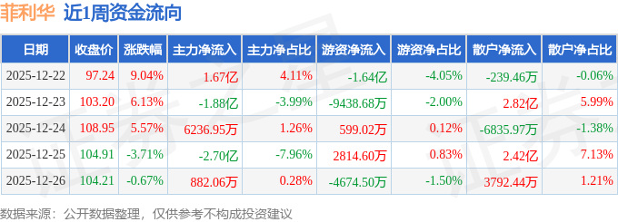 资金流向数据方面,本周菲利华主力资金合计净流出2.2亿元,游资资金合计净流出2.71亿元,散户资金合计净流入4.91亿元。本周资金流向一览见下表: