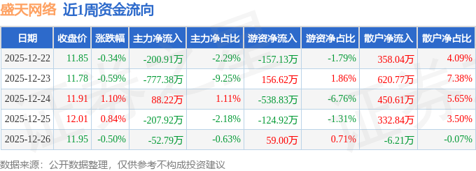 沪深股通持股方面,截止2025年12月26日收盘,盛天网络深股通持股数为610.77万股,占流通股比为154.0%。