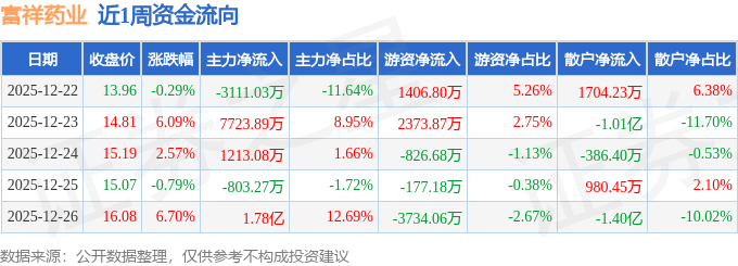 沪深股通持股方面,截止2025年12月26日收盘,富祥药业深股通持股数为272.61万股,占流通股比为60.0%。