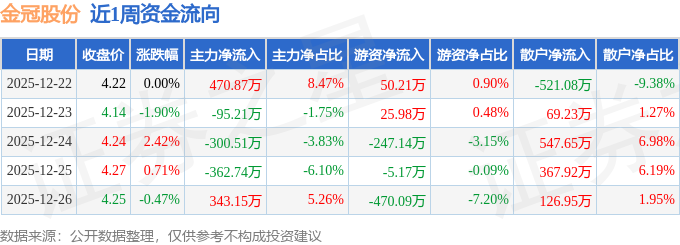 沪深股通持股方面,截止2025年12月26日收盘,金冠股份深股通持股数为356.94万股,占流通股比为43.0%。