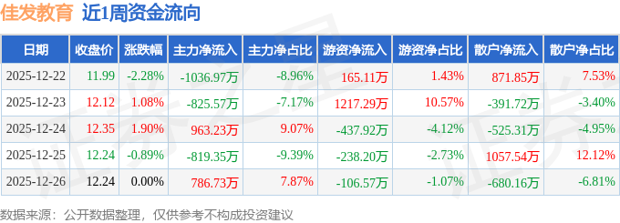 沪深股通持股方面,截止2025年12月26日收盘,佳发教育深股通持股数为165.01万股,占流通股比为53.0%。