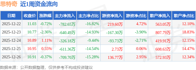 资金流向数据方面,本周思特奇主力资金合计净流出3070.38万元,游资资金合计净流入98.07万元,散户资金合计净流入2972.31万元。本周资金流向一览见下表: