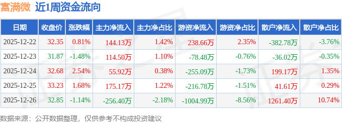 沪深股通持股方面,截止2025年12月26日收盘,富满微深股通持股数为207.89万股,占流通股比为96.0%。