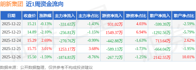 资金流向数据方面,本周朗新集团主力资金合计净流出1480.87万元,游资资金合计净流入1180.66万元,散户资金合计净流入300.2万元。本周资金流向一览见下表: