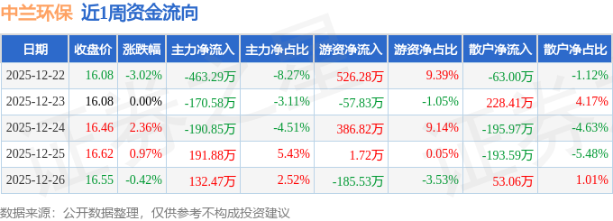 资金流向数据方面,本周中兰环保主力资金合计净流出500.37万元,游资资金合计净流入671.46万元,散户资金合计净流出171.09万元。本周资金流向一览见下表: