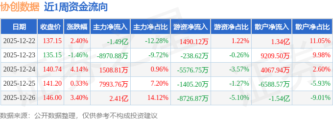 资金流向数据方面,本周协创数据主力资金合计净流入9732.42万元,游资资金合计净流出1.45亿元,散户资金合计净流入4724.9万元。本周资金流向一览见下表: