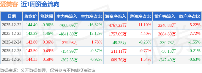 沪深股通持股方面,截止2025年12月26日收盘,爱美客深股通持股数为657.69万股,占流通股比为315.0%。