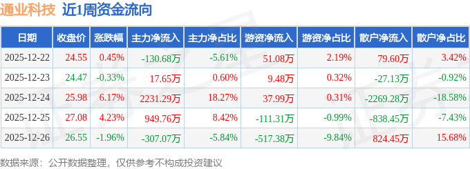 资金流向数据方面,本周通业科技主力资金合计净流入2760.95万元,游资资金合计净流出530.13万元,散户资金合计净流出2230.81万元。本周资金流向一览见下表: