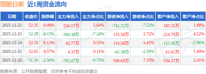 沪深股通持股方面,截止2025年12月26日收盘,国能日新深股通持股数为23.79万股,占流通股比为39.0%。