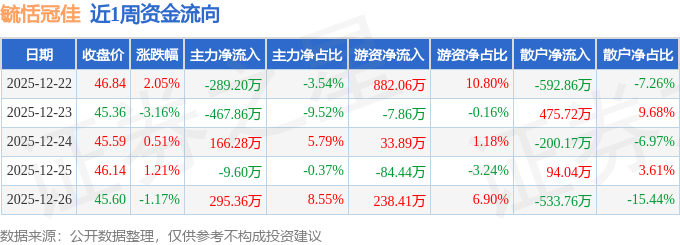 资金流向数据方面,本周毓恬冠佳主力资金合计净流出305.02万元,游资资金合计净流入1062.06万元,散户资金合计净流出757.04万元。本周资金流向一览见下表: