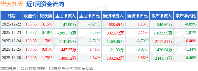 沪深股通持股方面,截止2025年12月26日收盘,华大九天深股通持股数为579.45万股,占流通股比为221.0%。