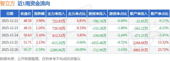 沪深股通持股方面,截止2025年12月26日收盘,智立方深股通持股数为14.23万股,占流通股比为55.0%。