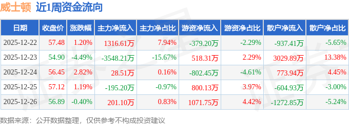 沪深股通持股方面,截止2025年12月26日收盘,威士顿深股通持股数为15.98万股,占流通股比为43.0%。