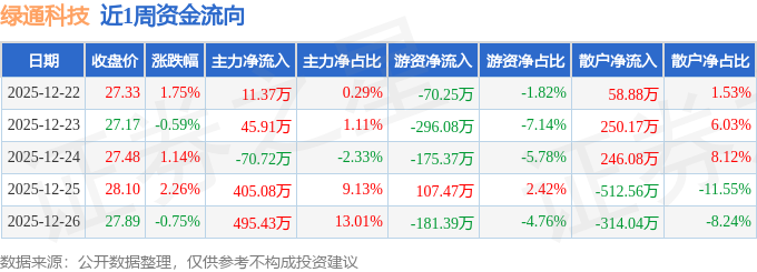资金流向数据方面,本周绿通科技主力资金合计净流入887.08万元,游资资金合计净流出615.62万元,散户资金合计净流出271.46万元。本周资金流向一览见下表: