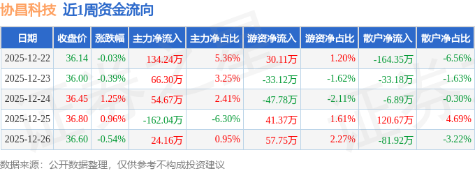 资金流向数据方面,本周协昌科技主力资金合计净流入117.34万元,游资资金合计净流入48.34万元,散户资金合计净流出165.68万元。本周资金流向一览见下表: