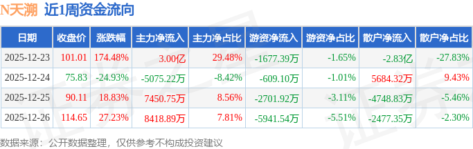 资金流向数据方面,本周C天溯主力资金合计净流入4.08亿元,游资资金合计净流出1.09亿元,散户资金合计净流出2.99亿元。本周资金流向一览见下表: