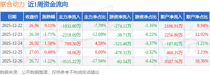 资金流向数据方面,本周联合动力主力资金合计净流出6838.75万元,游资资金合计净流出1395.16万元,散户资金合计净流入8233.9万元。本周资金流向一览见下表: