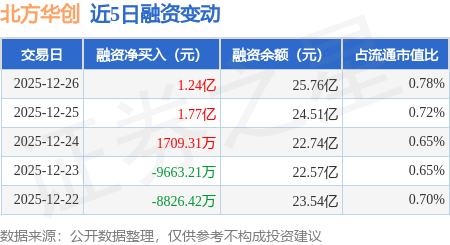 证券之星消息,12月26日,北方华创(002371)融资买入3.83亿元,融资偿还2.58亿元,融资净买入1.24亿元,融资余额25.76亿元,当日融资净买入排名第23,近3个交易日已连续净买入累计3.19亿元,近20个交易日中有12个交易日出现融资净买入。