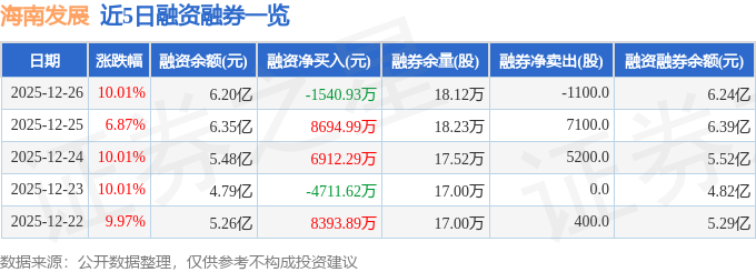 证券之星消息,截至2025年12月26日收盘,海南发展(002163)报收于22.75元,上涨10.01%,涨停,换手率28.37%,成交量227.99万手,成交额50.63亿元。