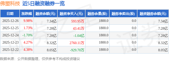 证券之星消息,截至2025年12月26日收盘,佛塑科技(000973)报收于14.22元,上涨9.98%,涨停,换手率9.42%,成交量91.17万手,成交额12.75亿元。