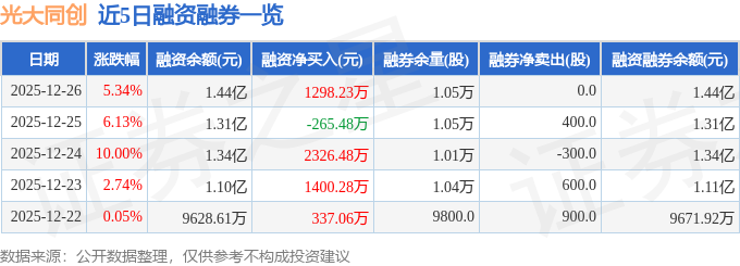 证券之星消息,截至2025年12月26日收盘,光大同创(301387)报收于55.83元,上涨5.34%,换手率17.67%,成交量7.54万手,成交额4.16亿元。