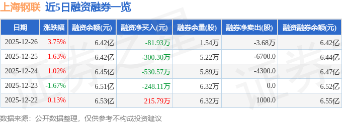 上海钢联融资融券信息显示,融资方面,当日融资买入5945.31万元,融资偿还6027.25万元,融资净偿还81.93万元。融券方面,融券卖出4600.0股,融券偿还4.14万股,融券余量1.54万股,融券余额38.75万元。融资融券余额6.42亿元。