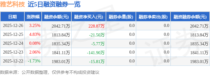 雅艺科技融资融券信息显示,融资方面,当日融资买入556.48万元,融资偿还327.6万元,融资净买入228.87万元。融券方面,融券卖出0.0股,融券偿还0.0股,融券余量0.0股,融券余额0.0万元。融资融券余额2042.71万元。