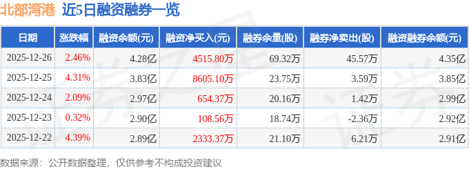 北部湾港融资融券信息显示,融资方面,当日融资买入1.69亿元,融资偿还1.24亿元,融资净买入4515.8万元,连续3日净买入累计1.38亿元。融券方面,融券卖出45.57万股,融券偿还0.0股,融券余量69.32万股,融券余额722.27万元。融资融券余额4.35亿元。