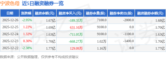 证券之星消息,截至2025年12月26日收盘,宁波色母(301019)报收于23.39元,下跌2.95%,换手率4.69%,成交量4.9万手,成交额1.16亿元。