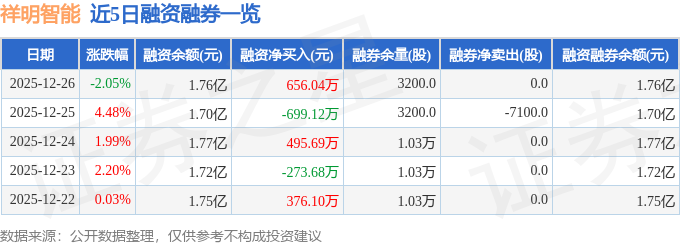 证券之星消息,截至2025年12月26日收盘,祥明智能(301226)报收于32.44元,下跌2.05%,换手率6.21%,成交量6.76万手,成交额2.23亿元。