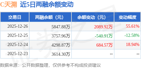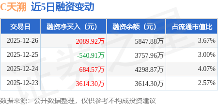 证券之星消息,12月26日,C天溯(301449)融资买入5502.91万元,融资偿还3412.99万元,融资净买入2089.92万元,融资余额5847.88万元。