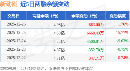 证券之星消息,12月26日,新劲刚(300629)融资买入1.98亿元,融资偿还1.9亿元,融资净买入860.55万元,融资余额4.97亿元。