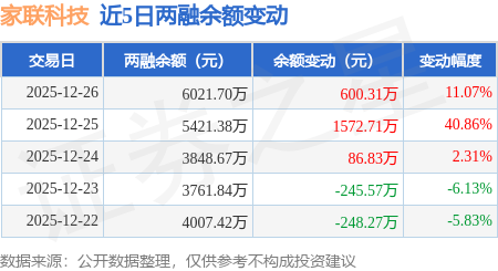 证券之星消息,12月26日,家联科技(301193)融资买入1224.38万元,融资偿还624.07万元,融资净买入600.31万元,融资余额6021.7万元,近3个交易日已连续净买入累计2259.85万元。