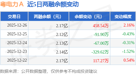 证券之星消息,12月26日,粤电力A(000539)融资买入1093.14万元,融资偿还630.83万元,融资净买入462.31万元,融资余额2.14亿元。