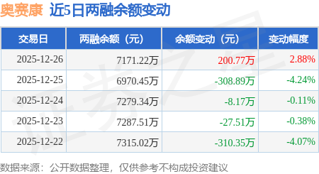 证券之星消息,12月26日,奥赛康(002755)融资买入813.56万元,融资偿还612.94万元,融资净买入200.61万元,融资余额7169.39万元。