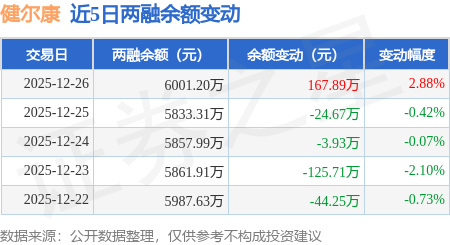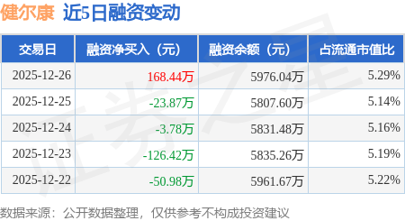 证券之星消息,12月26日,健尔康(603205)融资买入344.38万元,融资偿还175.94万元,融资净买入168.44万元,融资余额5976.04万元。