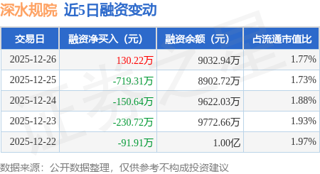 证券之星消息,12月26日,深水规院(301038)融资买入706.11万元,融资偿还575.88万元,融资净买入130.22万元,融资余额9032.94万元。