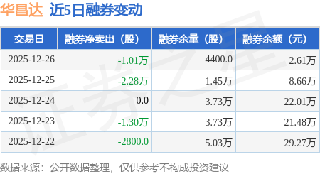 证券之星消息,12月26日,华昌达(300278)融资买入3073.95万元,融资偿还2960.76万元,融资净买入113.19万元,融资余额4.16亿元,近20个交易日中有12个交易日出现融资净买入。