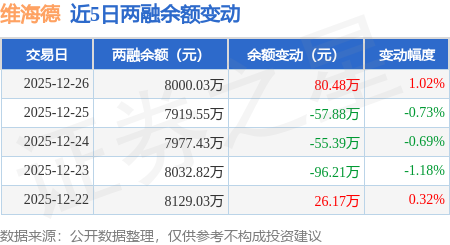 证券之星消息,12月26日,维海德(301318)融资买入368.45万元,融资偿还287.72万元,融资净买入80.73万元,融资余额7981.87万元,近20个交易日中有12个交易日出现融资净买入。