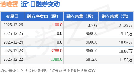 证券之星消息,12月26日,诺唯赞(688105)融资买入358.57万元,融资偿还331.76万元,融资净买入26.81万元,融资余额1.2亿元,近20个交易日中有14个交易日出现融资净买入。