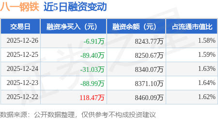 证券之星消息,12月26日,八一钢铁(600581)融资买入209.08万元,融资偿还215.99万元,融资净卖出6.91万元,融资余额8243.77万元。