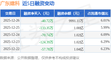 证券之星消息,12月26日,广东建科(301632)融资买入211.73万元,融资偿还252.45万元,融资净卖出40.72万元,融资余额9991.11万元。
