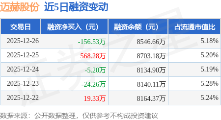 证券之星消息,12月26日,迈赫股份(301199)融资买入1012.17万元,融资偿还1168.69万元,融资净卖出156.53万元,融资余额8546.66万元。