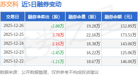 证券之星消息,12月26日,苏交科(300284)融资买入1168.79万元,融资偿还1348.68万元,融资净卖出179.89万元,融资余额3.74亿元。